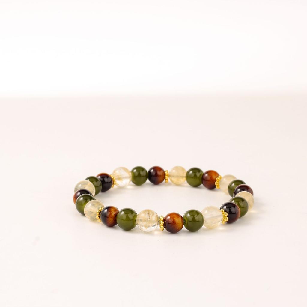 Festive Gifts Tiger Eye Green Aventurine And Rutilated Quartz Beaded Bracelet Natural Fashion Jewelry Daily Wear Simple Versatile Accessory