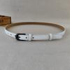 This women's slim PU leather belt features a durable alloy metal clasp and measures 105cm in length with a width of less than 2cm, ideal for dress pants and casual outfits. Crafted from high-quality PU leather with a polished finish, it offers a sleek, minimalist design suited for versatile styling. Perfect for everyday wear, it enhances formal and casual ensembles alike. Wipe clean with a damp cloth to maintain its appearance.