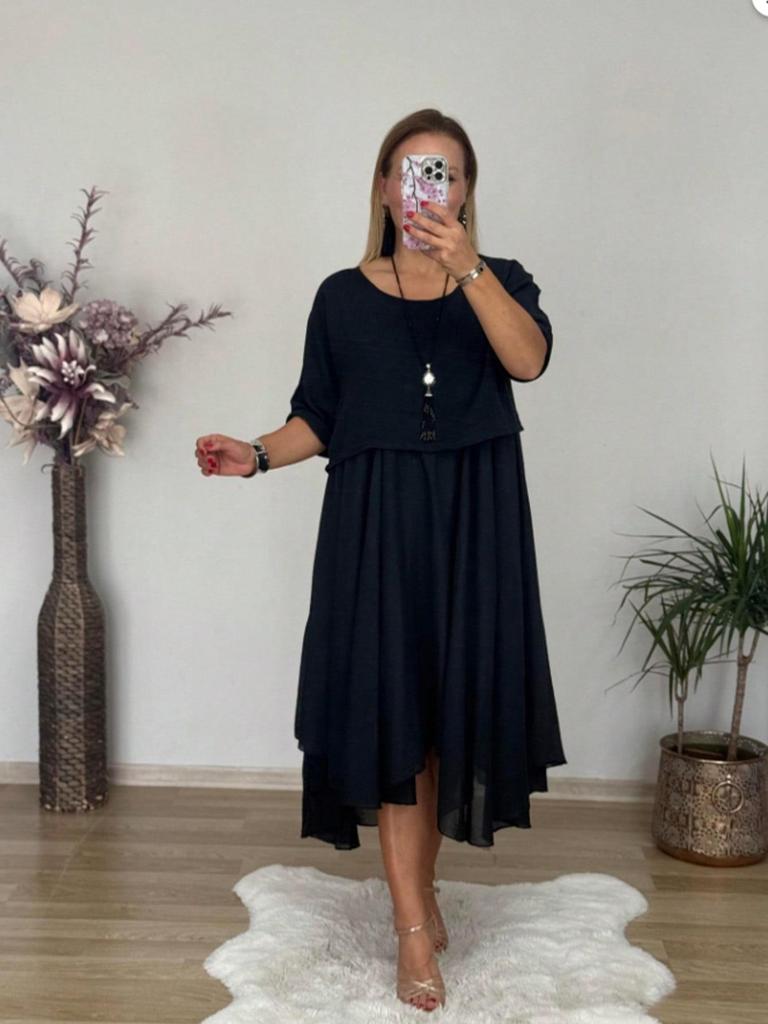 2025 Elegant Plus Size Two-Piece Summer Dress - Slimming, Tummy Concealing Solid Color Skirt