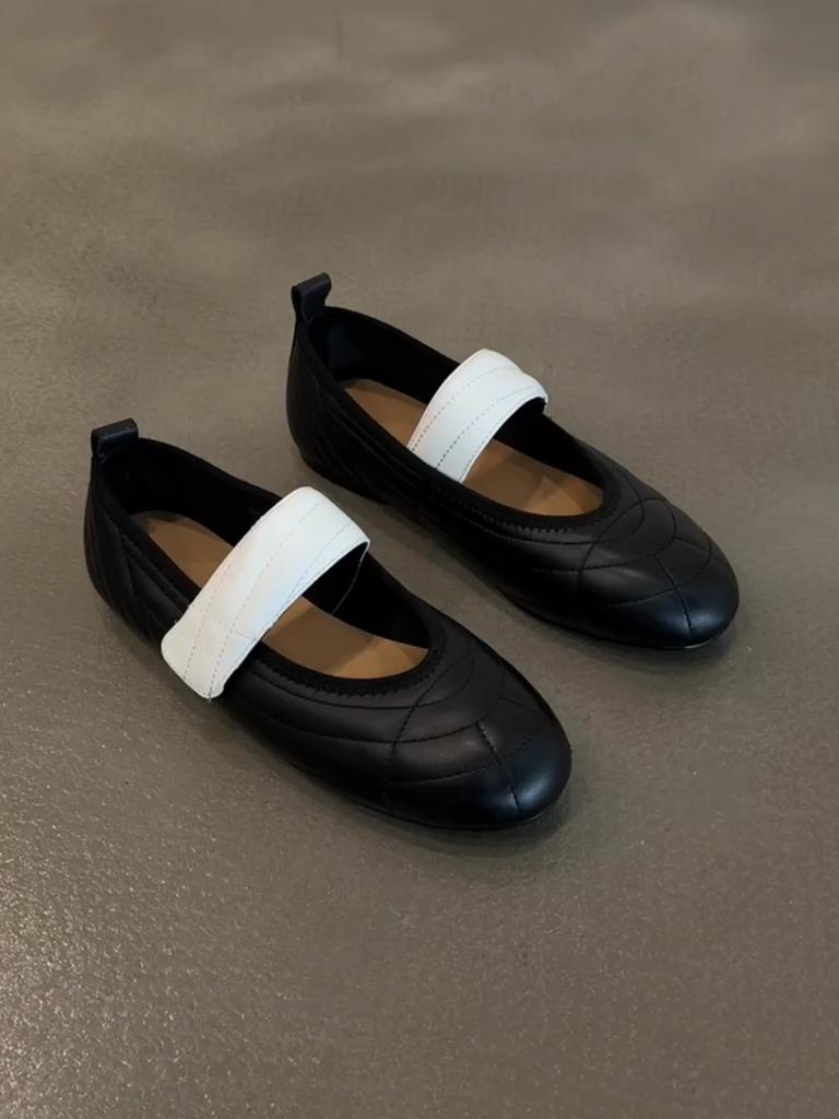 Soft Leather Version~ French Leather Light Mouth Mary Jane Shoes Women's 2025 New Velcro Color Matching Flat Ballet Shoes