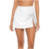 Women's Fashion Sexy Color High Waist Pleated Slit Drawstring Swimming Briefs Double Skirt Swimming Trunks