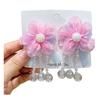 Hairpin Gradient Organza Flowers Bowknot Imitation Pearl Decor with Beaded Tassel Hair Clip