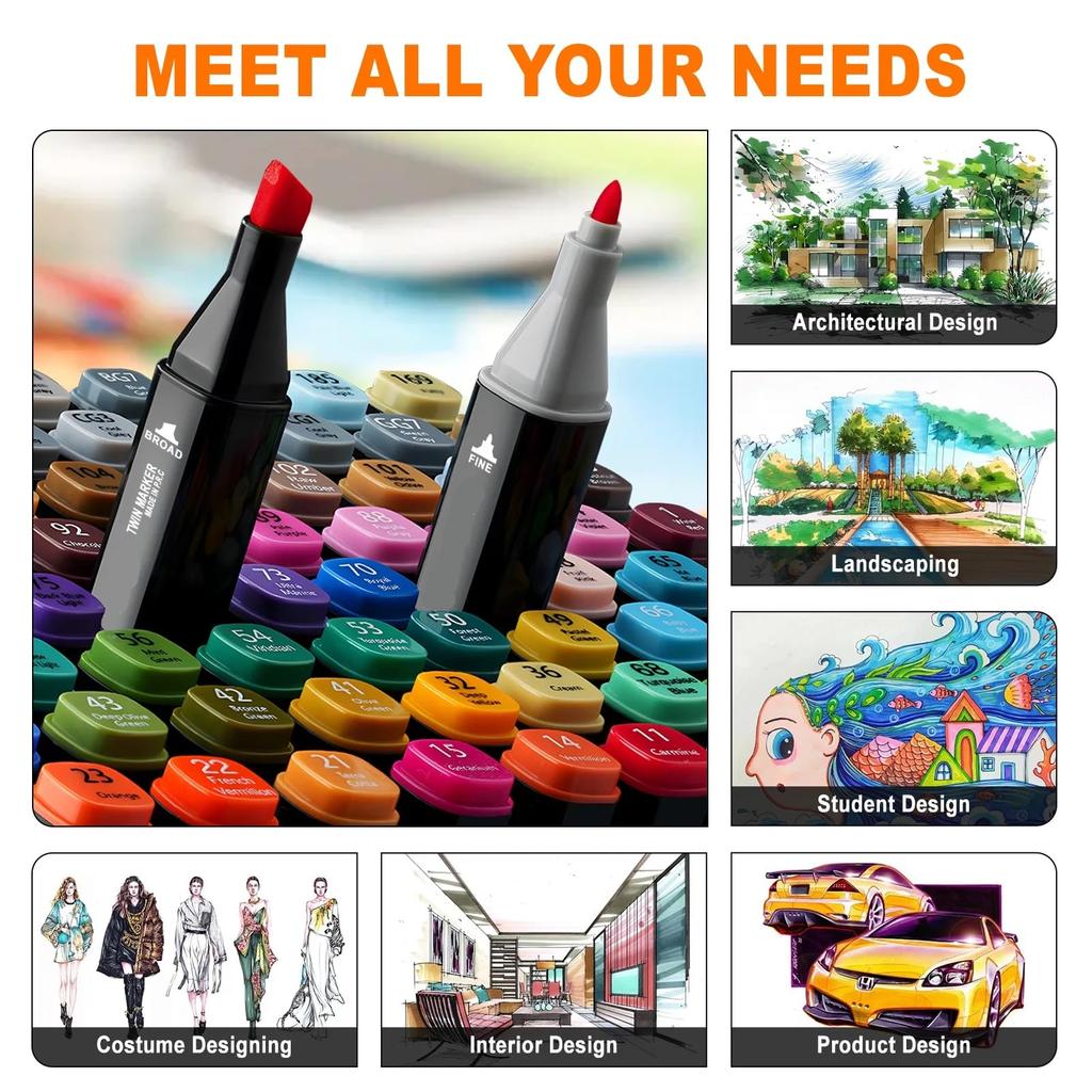 UCRAVO 48 Colors Markers, Double Tip Blender Art Drawing Markers Set, Professional Permanent Sketch Markers, Sketching D