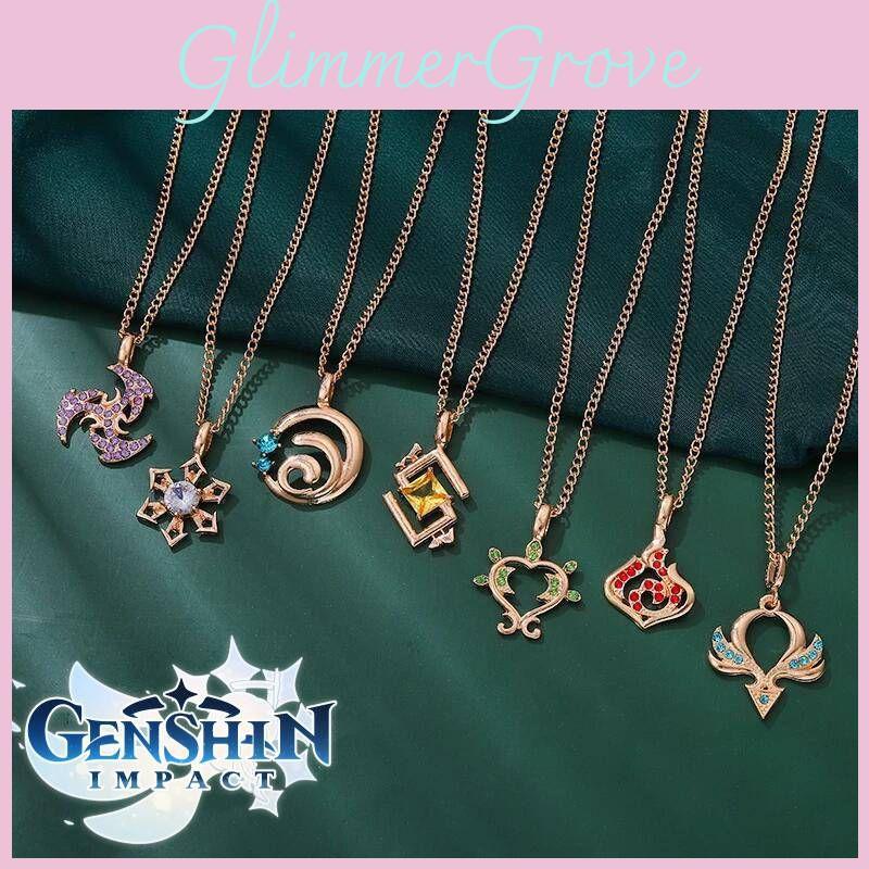Genshin Impact Vision Element Diamond Pendant Necklace Alloy Chain Zircon Inlaid