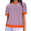 Women's Summer Striped Print Short Sleeve Round Neck T-Shirt Clothes Sale