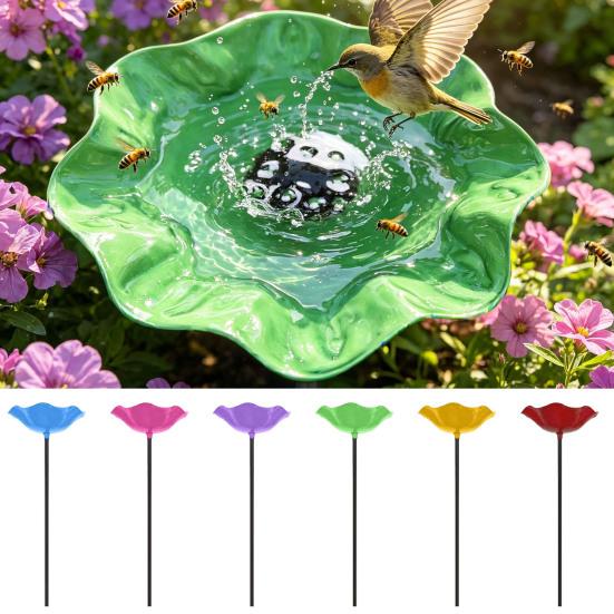 Handmade Flower Garden Stake Ground Insert Bee Butterfly Watering Station Decorative Bird Bath Pollinator Drinking Bowl for Outdoor Yard Lawn Decor