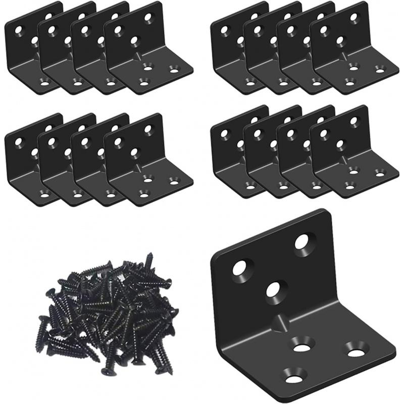 16-Pack Black Stainless Steel Corner Brace 1.5" L Shaped Heavy Duty Right Angle Bracket For Wood Shelves With Screws