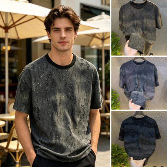 Men Stylish Shabby T-Shirt Loose Fit Casual Tee Sparkling Summer Tee Shirt for Party Holiday Street Wear