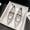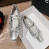 Silver Leather Patchwork mary janes shoes woman ballet flats ankle strap glitter loafers ladies bling dress shoes