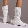 Mid-Calf Boots Women Flat Height Increasing Spring Autumn Pleated Boots Long Western Cowboy Boots Footwear Large Size 34-46