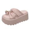 Women 8CM High Platform Sandals Wedge Hollow Mules Shoes Casual Chunky Sneakers Woman Summer Leather Beach Slippers pink heels