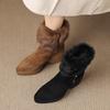 Short boots women's autumn and winter personalized fashion boots mink wool sheepskin black leather boots two height women's boots