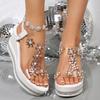 Fashion Flower Decor Wedges Sandals for Women Plus Size Shiny Crystal Chunky Platform Slippers Woman Thick Sole Comfort Non Slip Sandals