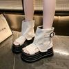 Summer thin high-top sandals fashion toe muffin denim ripped summer Martin boots leaking mesh short boots women