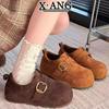 cm heightening thick-soled lamb wool shoes children's velvet warm cotton shoes leather bag head slippers outer wear