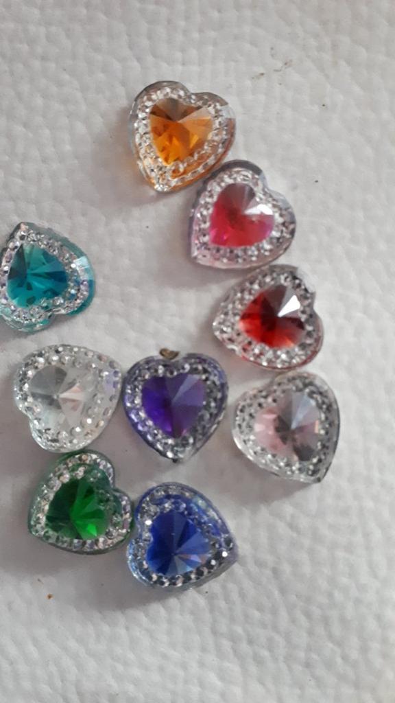 50 boutons à dos plat en résine strass cœur 12mm, Double perceuse rouge