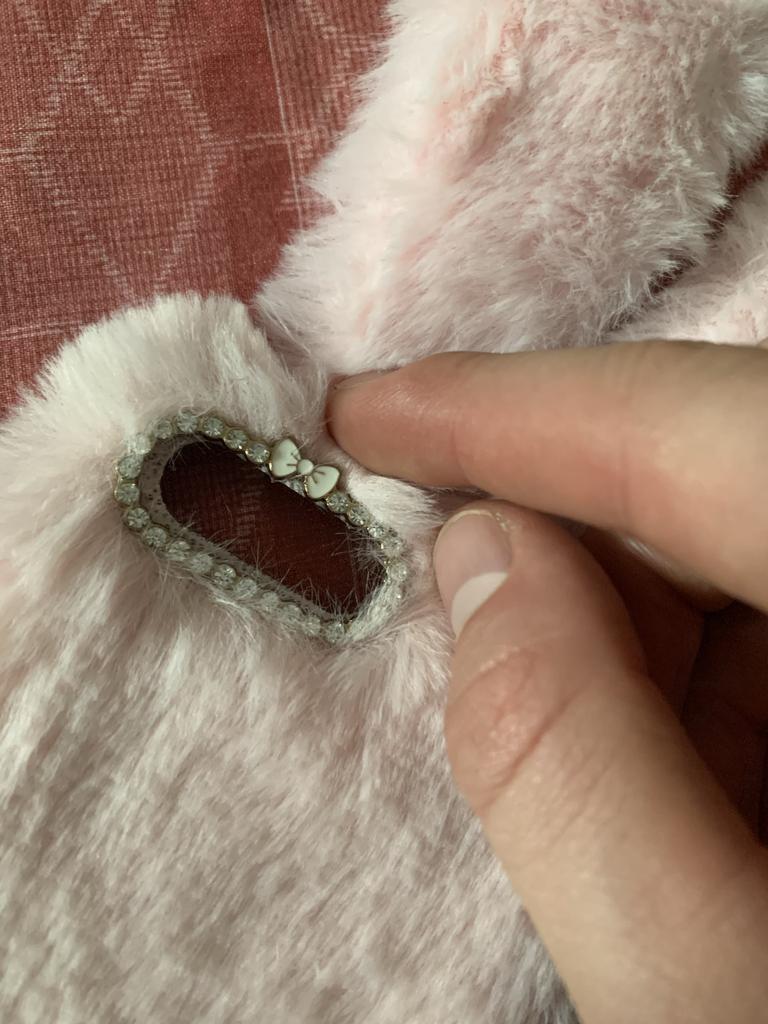 C'est tellement moelleux mais il n'y avait pas de perles sur le devant comme sur la photo et les peluches tombent partout mais c'est mignon
