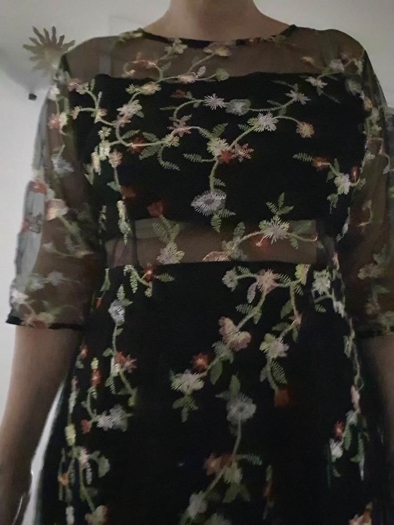 Dame maille broderie florale robes Sexy femmes robe de soirée élégante Transparent col rond grande taille