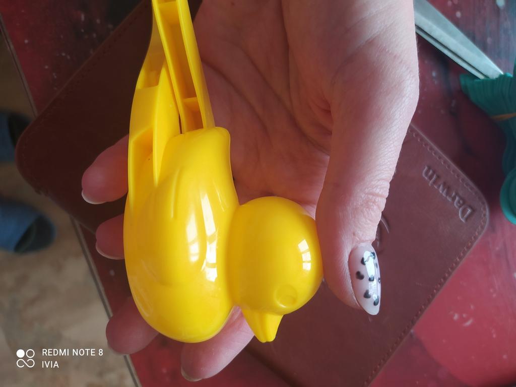 Canard drôle et mignon. Nous n'avons pas encore de neige. Merci J'ajoute une photo, il neige. Sculpte bien, il est difficile pour les canards des neiges de sortir. Et le bouchon de fixation est tombé, par conséquent a été perdu. J'ai mis un élastique pour les cheveux en plusieurs tours au point d'attache.