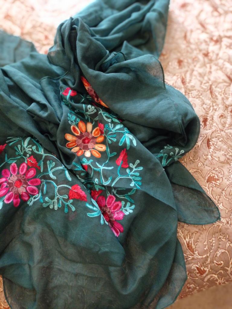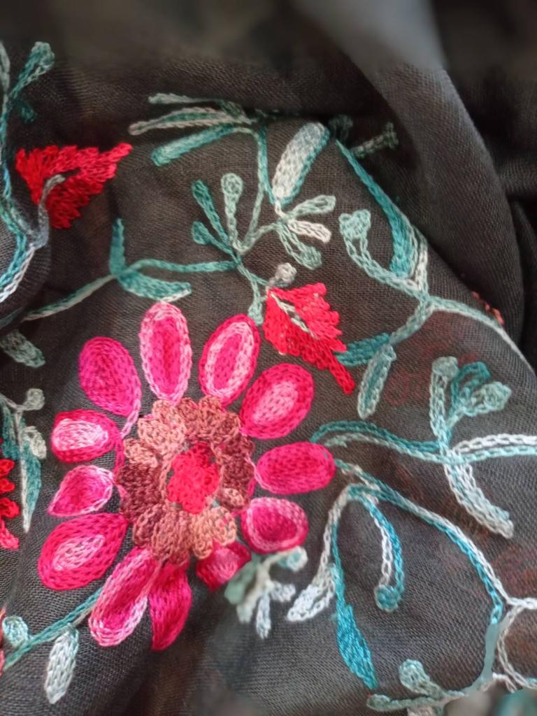 Très belle écharpe couleur vive broderie très belle j'aime beaucoup merci beaucoup