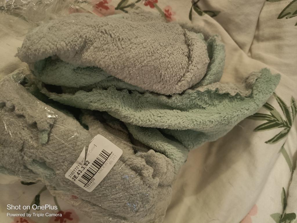 Les serviettes sont belles. 10 pièces dans un paquet. 3x gris violet, 3 x gris rose et 4 x gris vert. J'espère qu'ils se lavent et sèchent bien.