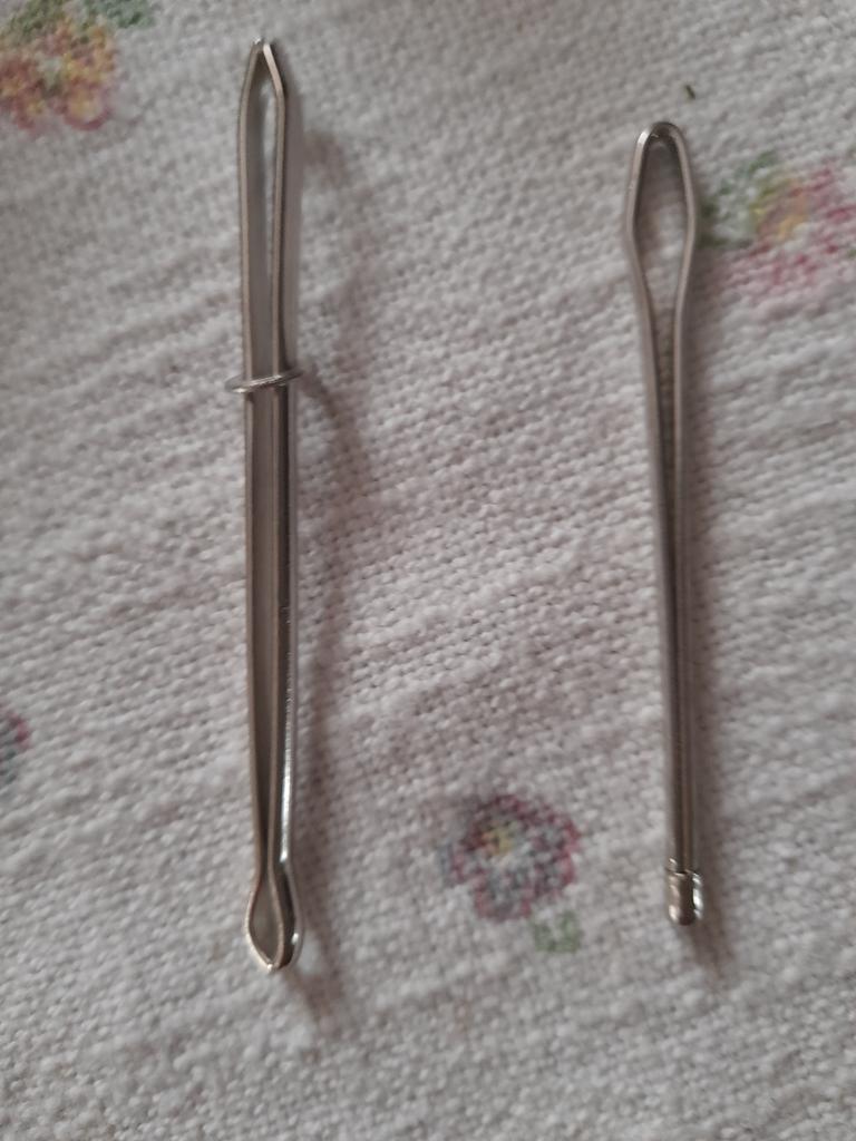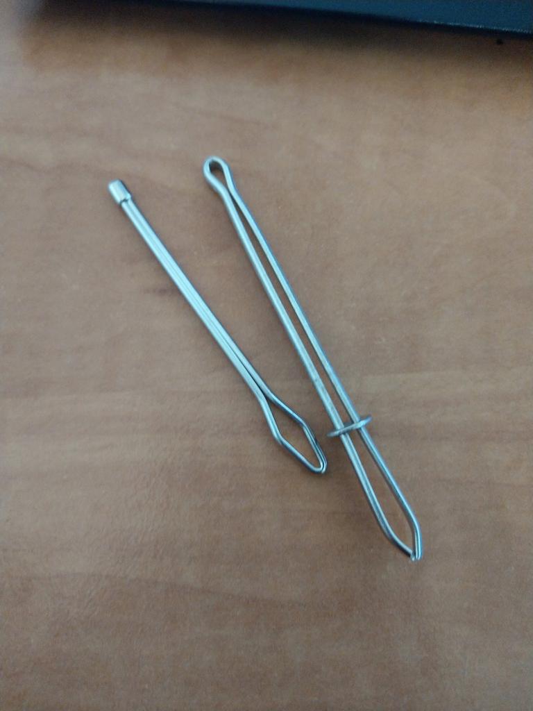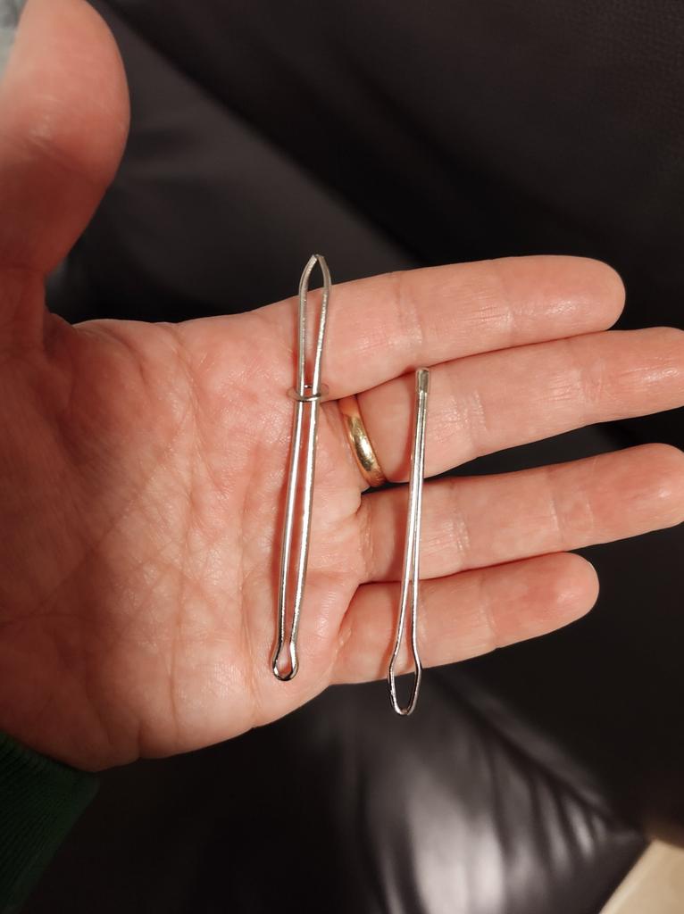 J'ai reçu des épingles. J'ai essayé d'enfiler la tresse - ça s'est très bien passé ! Bien mieux qu'une épingle anglaise ordinaire, qui se détache périodiquement au cours du processus. Et le métal est épais, solide. Merci Juum !