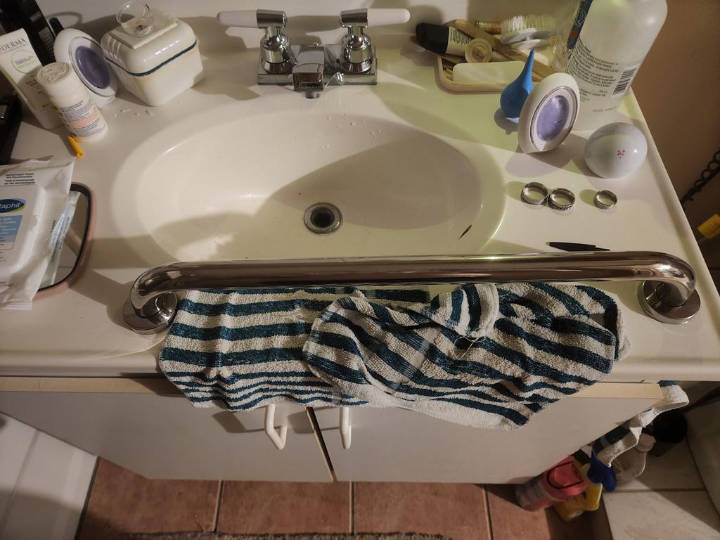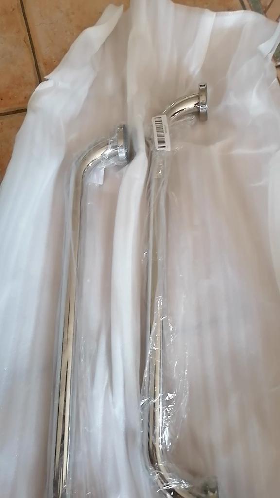 Il est fait de métal très très léger. Et ça n'a pas l'air d'être de l'inox car il y a une odeur d'oxydation. La barre semble rouiller avec le temps et il est préférable de l'utiliser comme porte-serviettes, mais PAS dans une salle de bain.