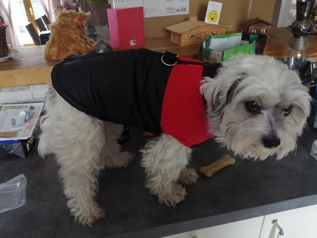 Super contente de ce produit très bien taillée xl pour un bichon, elle peut-être un peu moins contente mais elle aura plus chaud