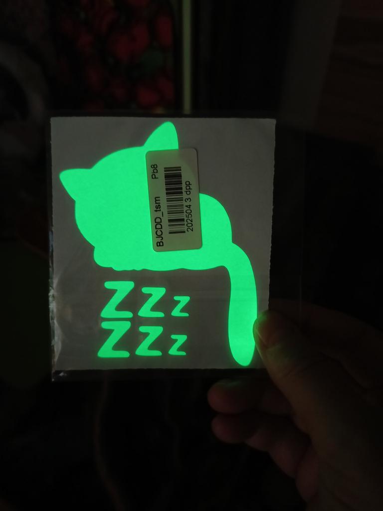Autocollant mignon. Il brille dans le noir – vous ne manquerez pas la prise. Colle bien.