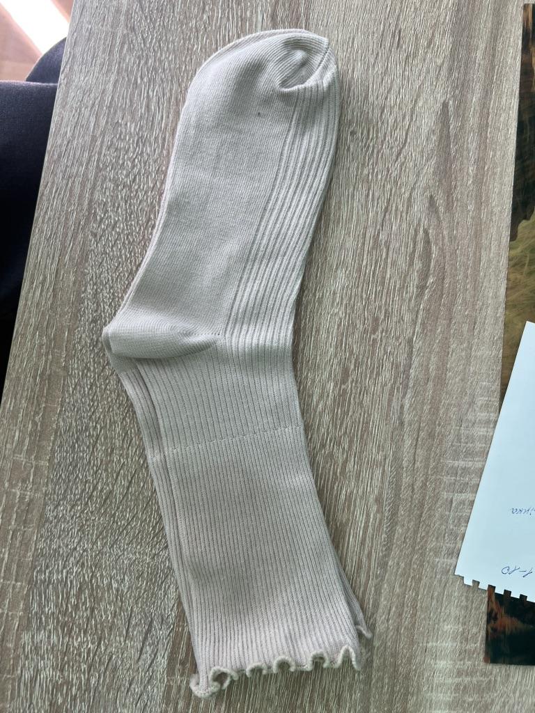Encore quelques-uns ! Cette paire est beige 🌻 J'ai déjà des paires grises et blanches, donc maintenant j'en ai trois! Elles sont super douces, vous pouvez juste les laver en machine et tout ira bien Elles sont chaudes mais restent idéales pour l'été Cette paire est un peu plus longue que la précédente, mais néanmoins la taille est correcte Je porte une taille 38, mon pied mesure 24-25 cm Les chaussettes sont en coton, la matière est élastique Livré rapidement dans un colis séparé ! Personnellement j'aimerais mieux qu'il y ait moins de plastique dans l'emballage Mais ça ira 🌷 Fortement recommandé 👍🏼😊