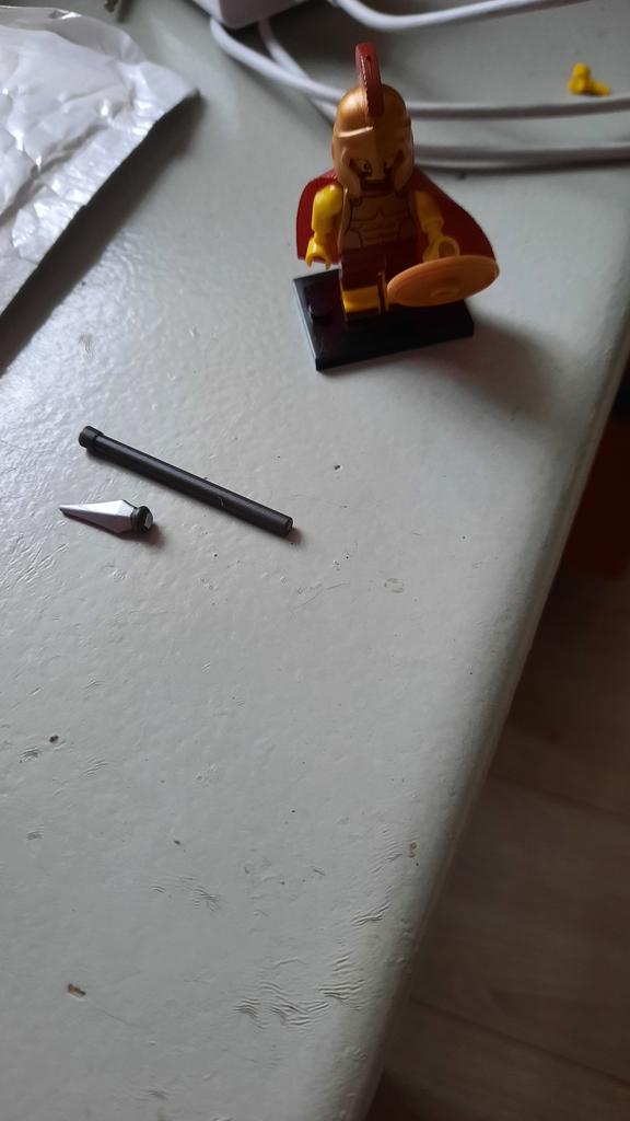 L'épée ne brille pas comme sur la photo 4, mais est gris clair (mat) - on peut bien la peindre.
