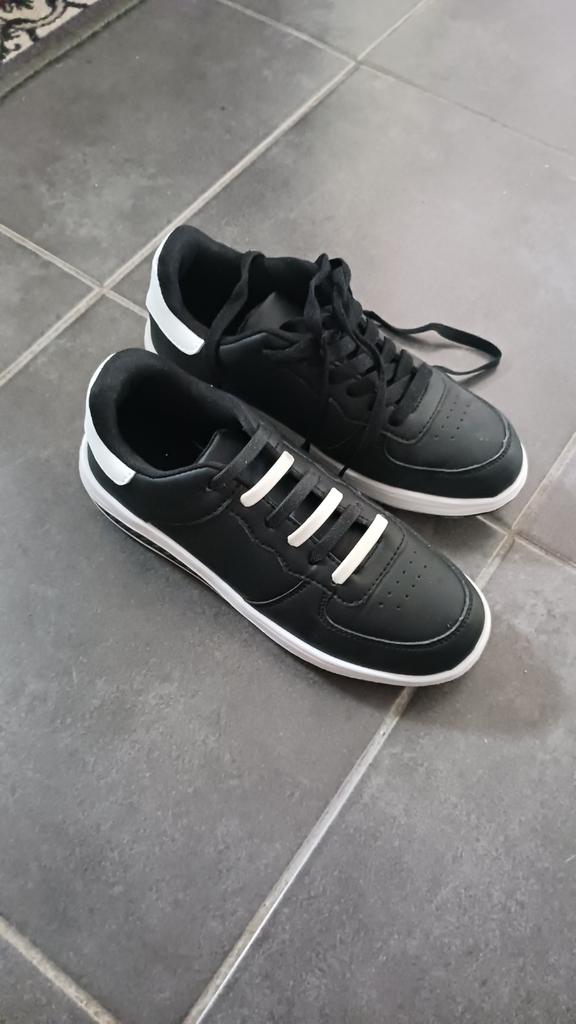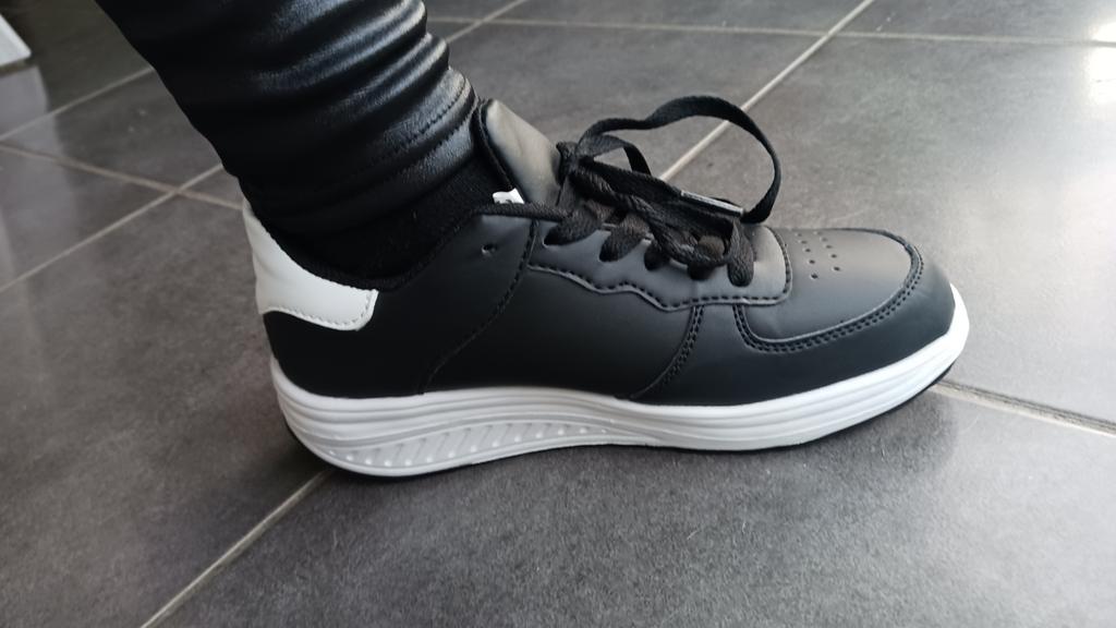 Bonne taille en 37 Confortable Le plastique noir qui garde bien la basket bombée pendant le voyage ! Sauf la bande grise que d un côté ! J avais commandé 2 paires en même temps et j ai reçu l autre 1 semaine après ?