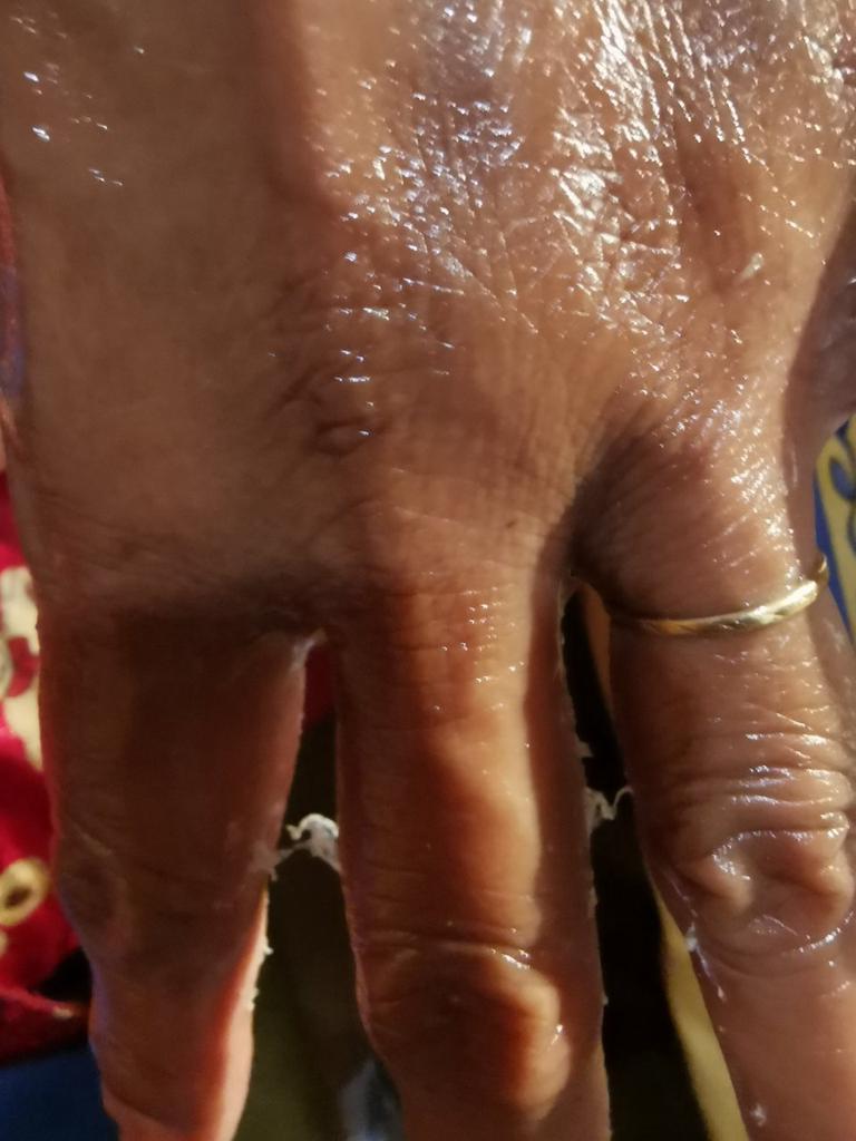 J'ai traité avec le produit une de mes mains et j'ai demandé à mo. mon mari de le dire laquelle a été traurté8 mais il 's' est trompée !! Et sur la photo des 2 mains, il n'y a pas de différence !!? Très décevant !!!