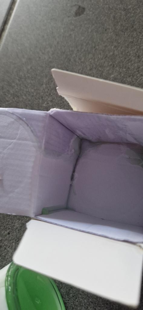 La boite même était emballé, quand je ouvert le plastique-il y avait odeur, et j'ai vu qu'à ça coule... La couvercle ne pas la même que sur photo,