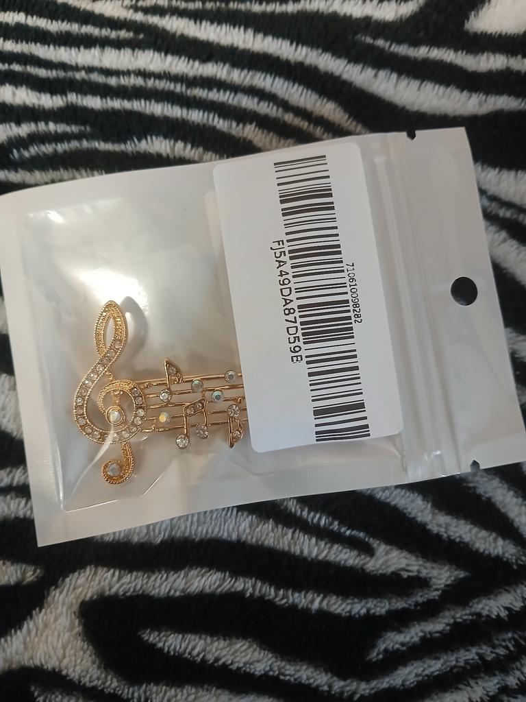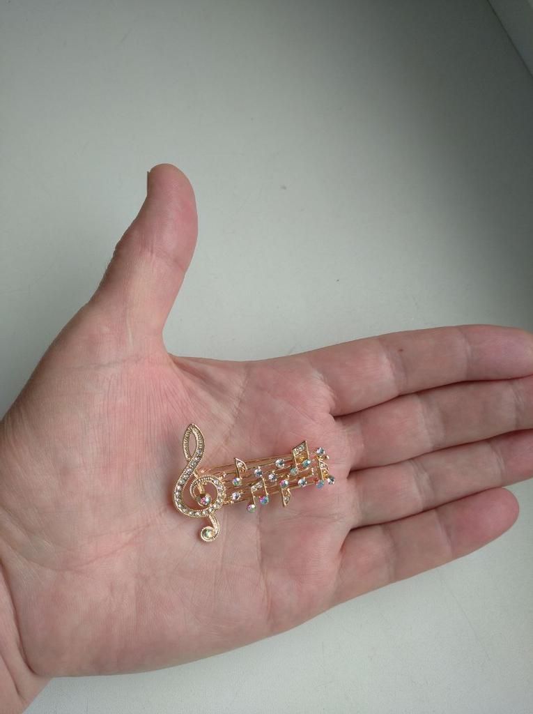 Grandes broches avec note de musique en cristal pour femme, taille : 3,6 x 4,7 cm.