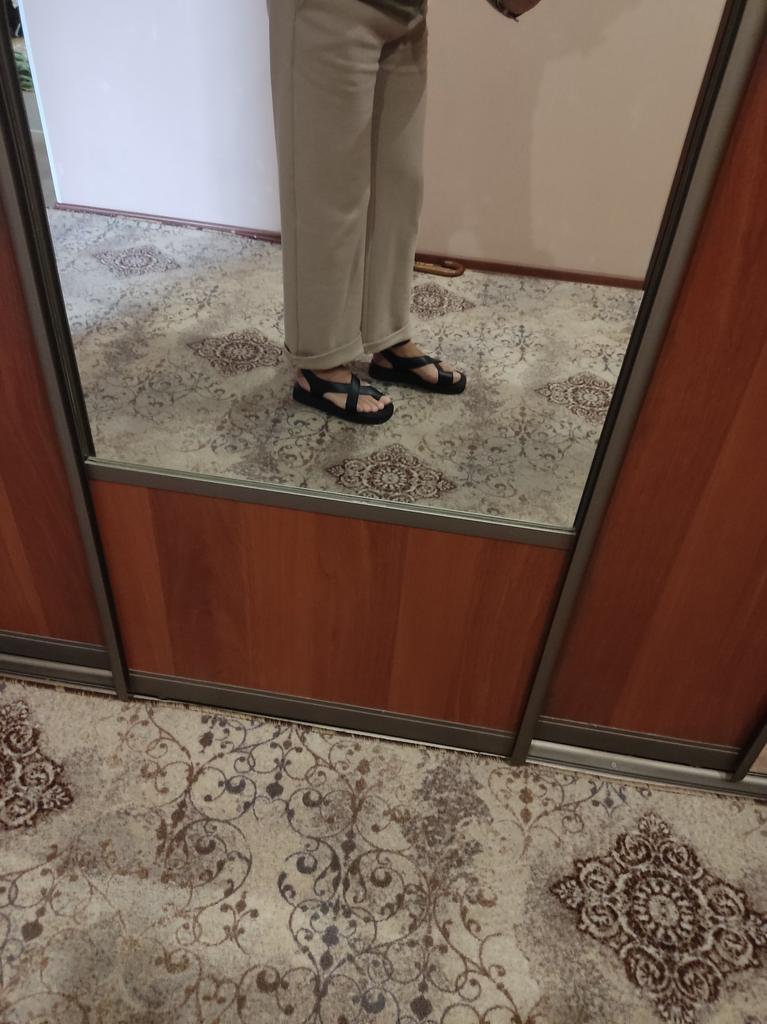 Très bonnes sandales ! Très probablement en cuir ! 43 convient au 26,5 pieds. Très confortable, même avec mes pieds larges et j'ai une armature. Je suis satisfait. Merci beaucoup!!!