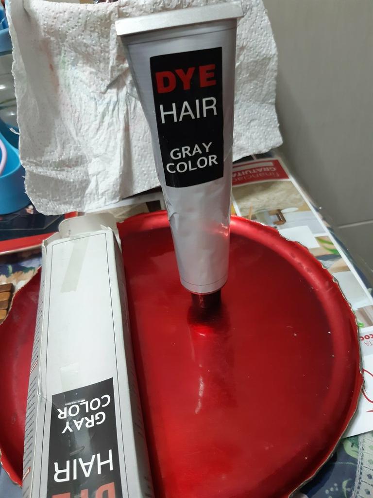 Le tube de peinture au lieu d'ajouter la nuance de gris a laissé ses cheveux blond foncé. Le tube est venu avec la commande et j'ai fait le gris. Mais cela ne correspond pas à la réalité