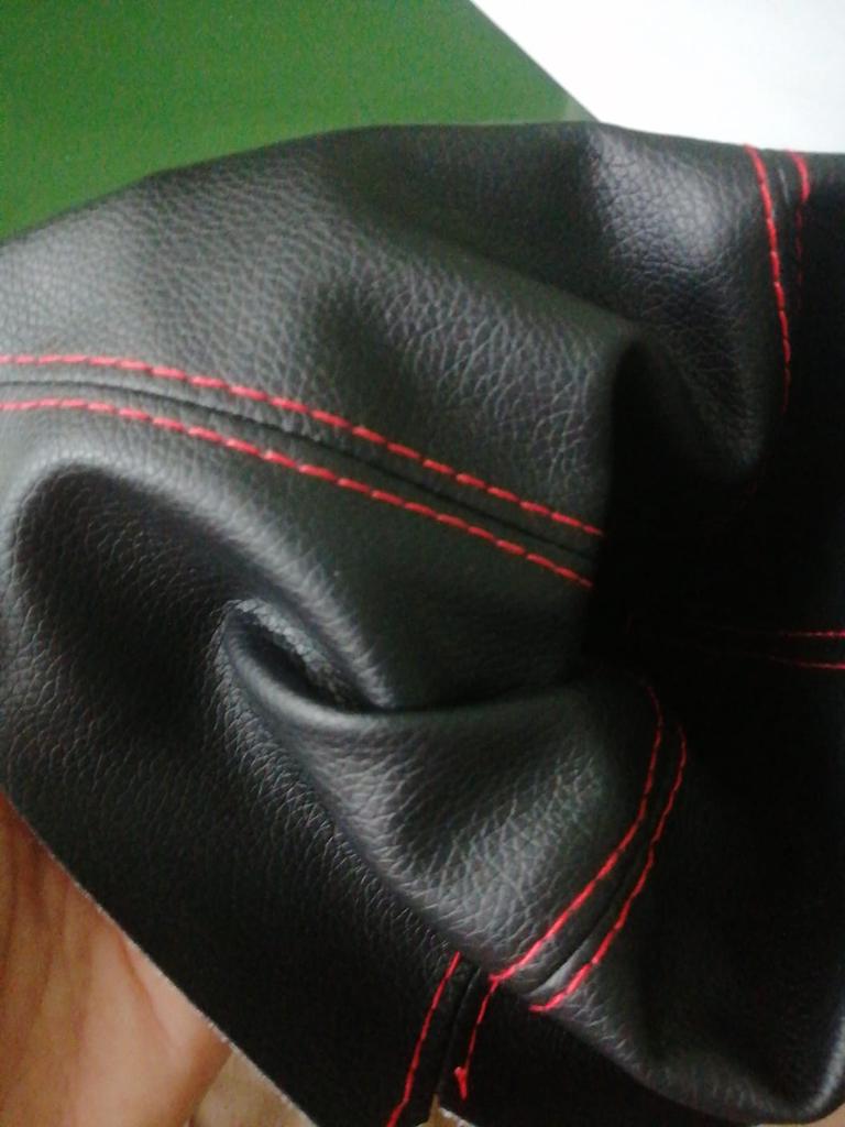 Couvercle de pommeau de levier de vitesse en cuir Pu noir brillant, couvercle de botte de guêtre de vitesse à point rouge