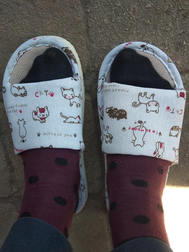 Belles pantoufles. Le tissu est naturel, agréable au pied, ne défroisse pas. Couleur et ornement comme sur la photo. La taille est convenable. Tout est bien. Je suis heureux. Merci Juum !
