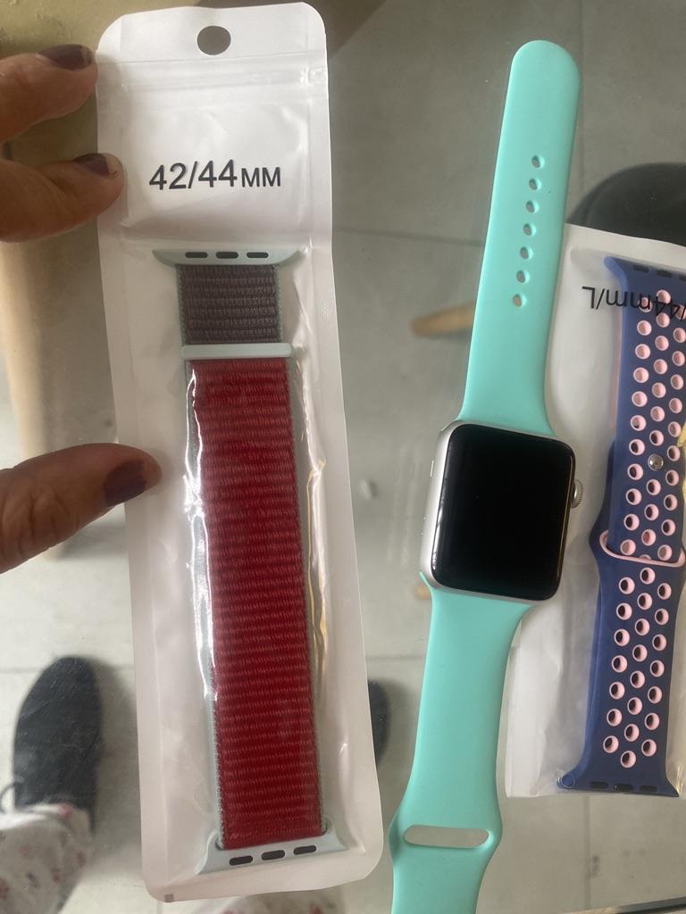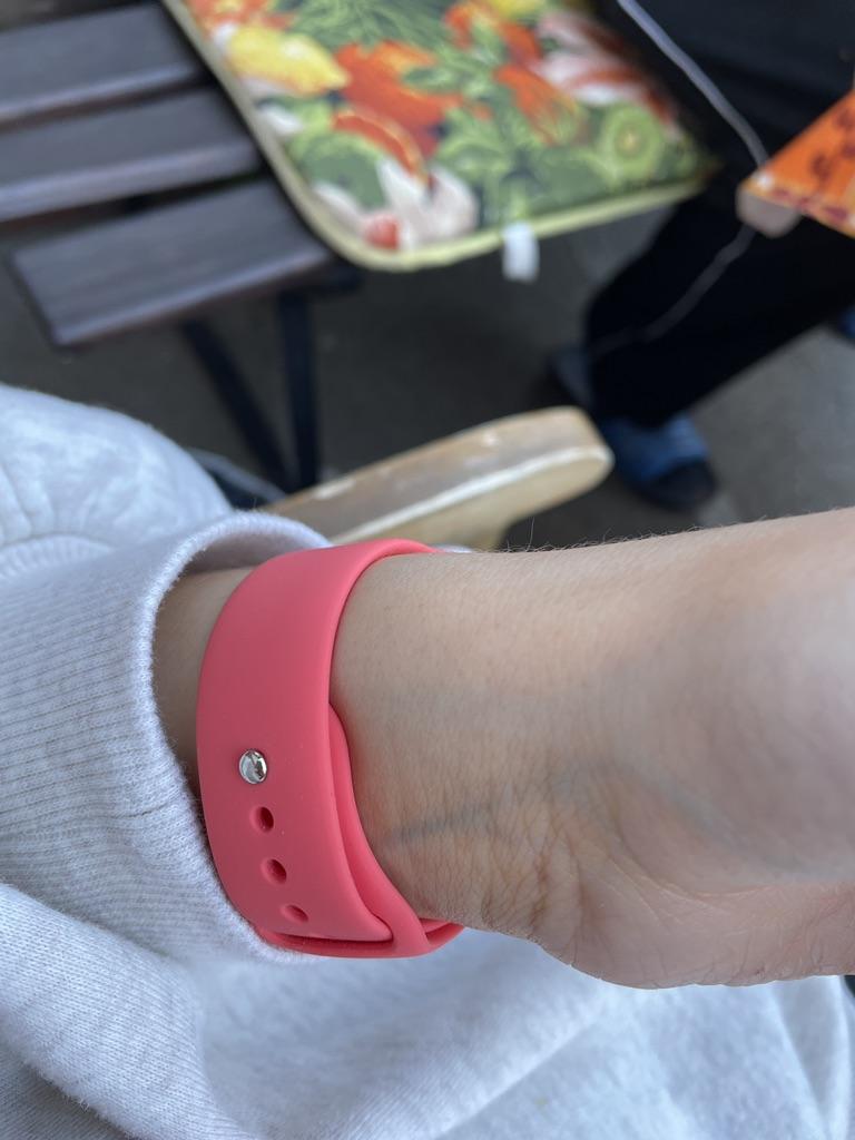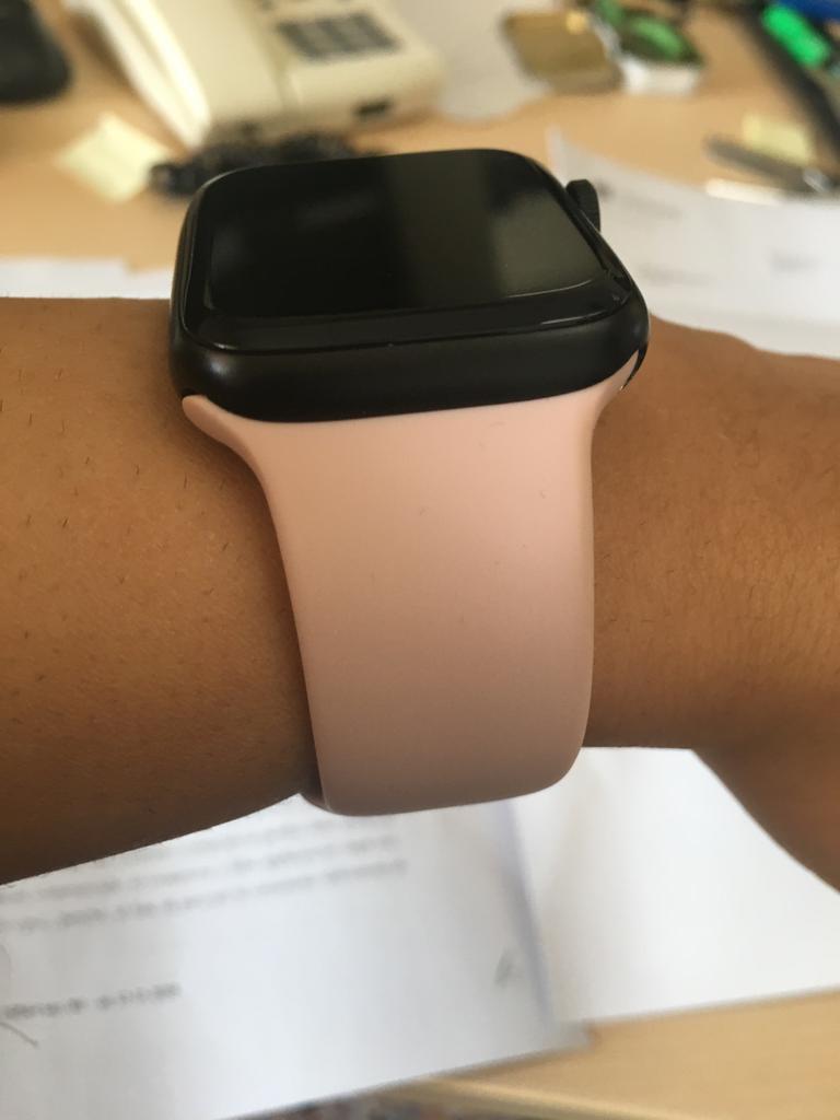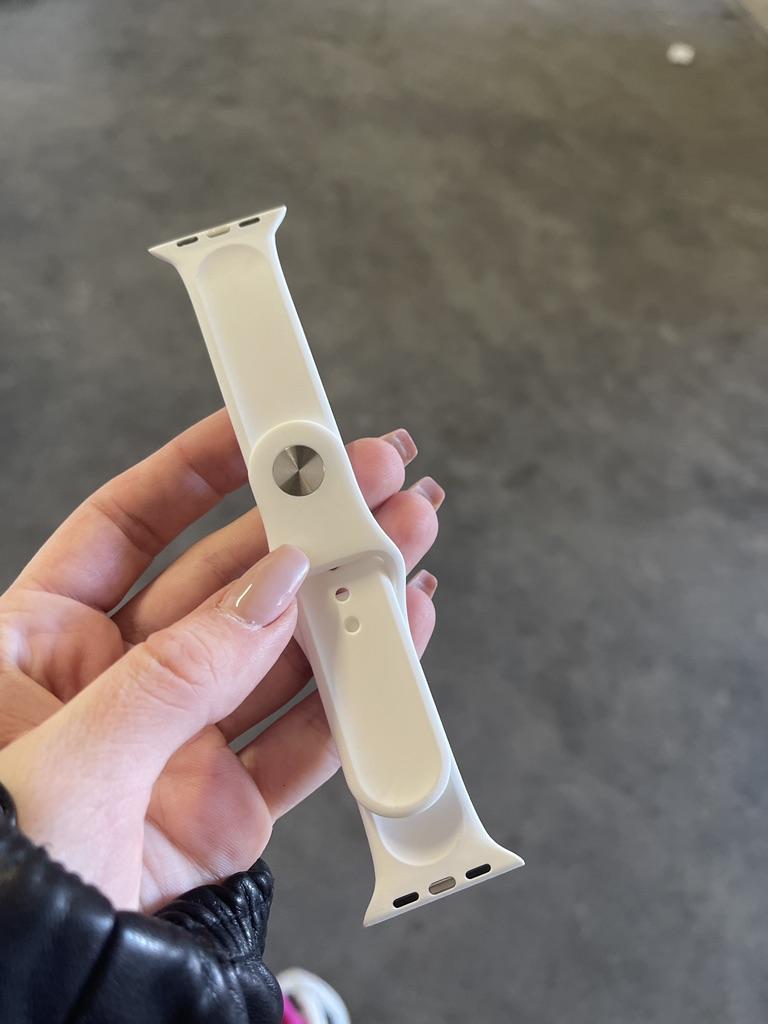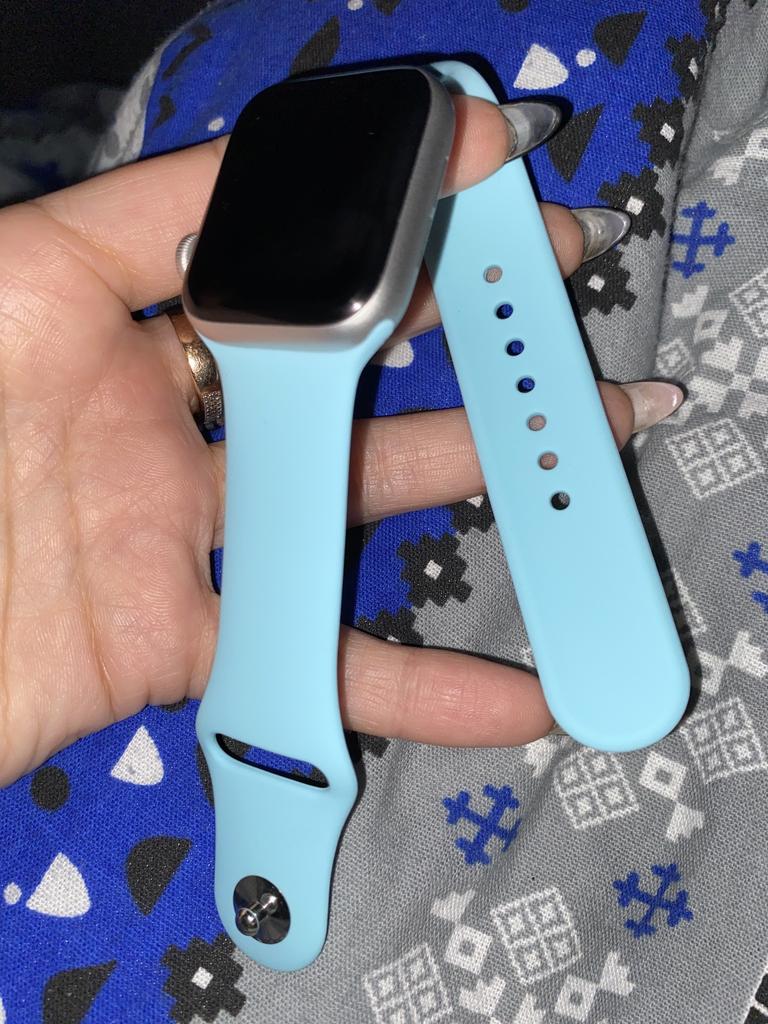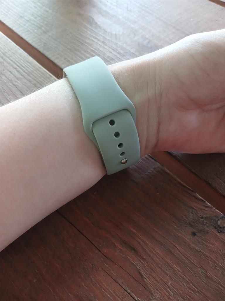 Brassard Apple Watch SE en silicone. J'ai commandé un autre bracelet noir pour mon beau-frère. Il pense que c'est vraiment bien et ne voit aucune différence avec les produits d'origine. Je ne peux que le dire encore et encore si vous avez une Apple Watch et avez besoin de nouveaux bracelets, joom est le bon endroit pour vous. Le fermoir s'adapte parfaitement, les embouts sont de la bonne longueur et il est sûr à porter.