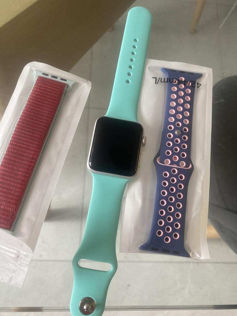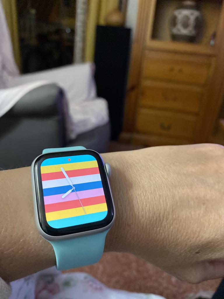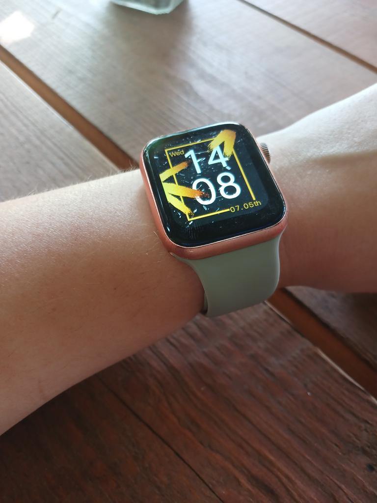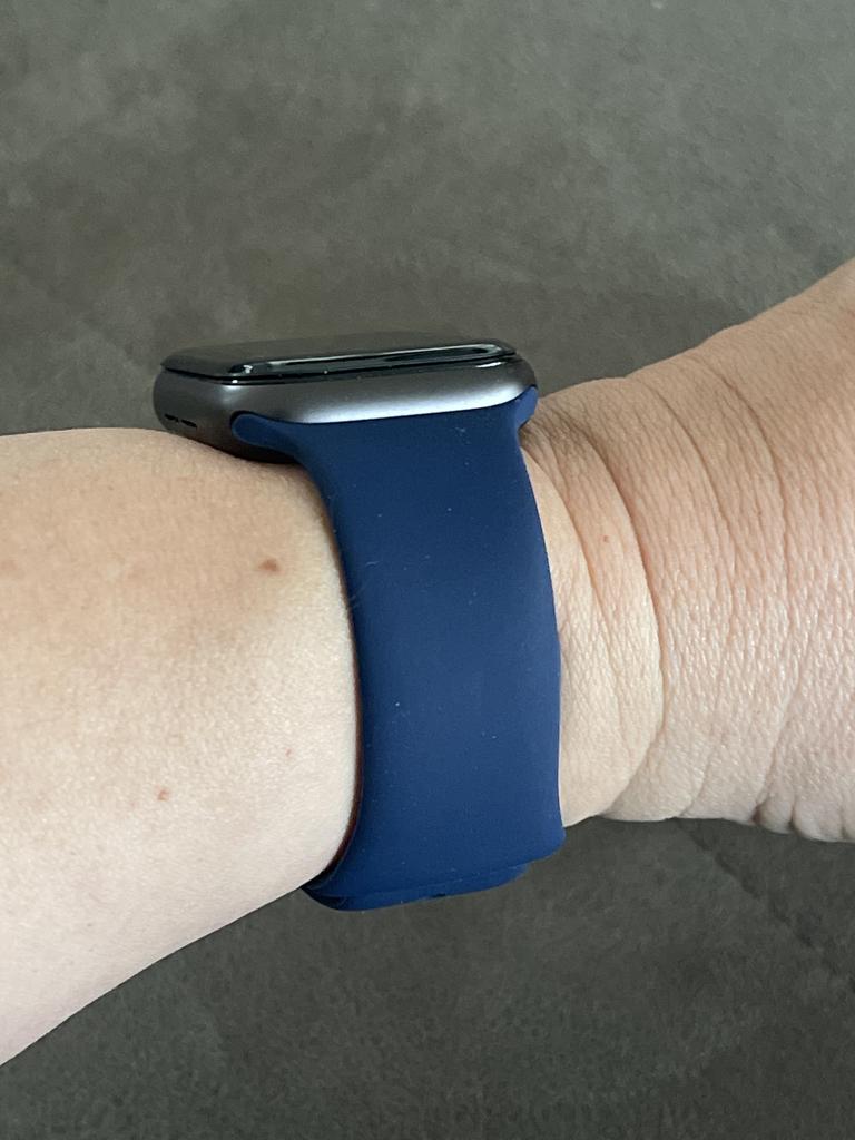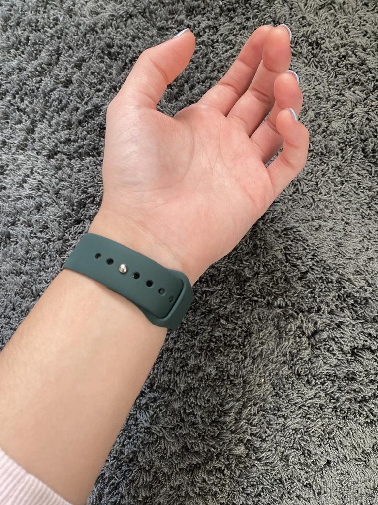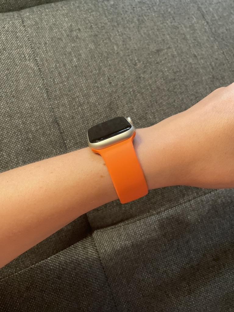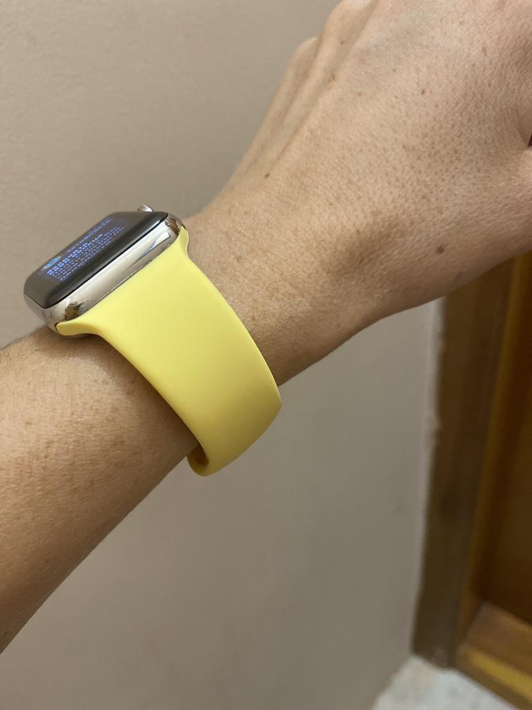 Brassard Apple Watch SE en silicone. J'ai commandé un autre bracelet noir pour mon beau-frère. Il pense que c'est vraiment bien et ne voit aucune différence avec les produits d'origine. Je ne peux que le dire encore et encore si vous avez une Apple Watch et avez besoin de nouveaux bracelets, joom est le bon endroit pour vous. Le fermoir s'adapte parfaitement, les embouts sont de la bonne longueur et il est sûr à porter.
