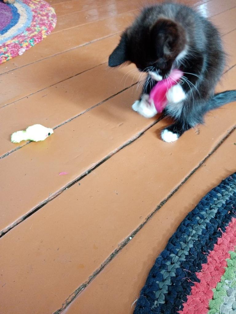 A peine poser par terre ma chatte a joué avec je m en doutais elle adore ca