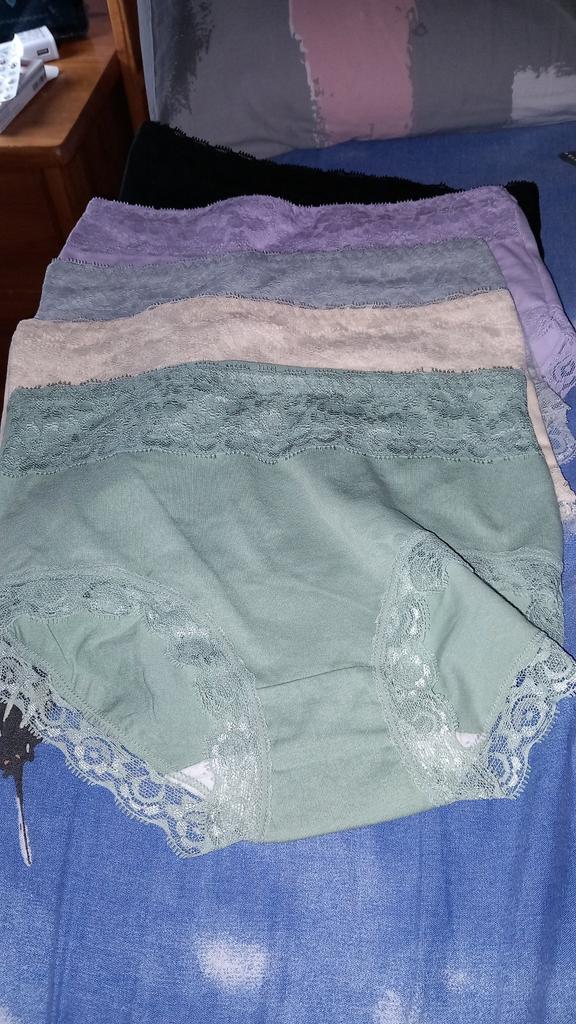 Bonjour, j'ai bien reçu ma commande le lot de 5 culottes et franchement elles sont juste impeccable et trop belles et mais pas trop extensibles je les recommandes car on les sent pas sur nous tellement elles sont bien ma taille normalement est 46/48 et j'ai pris 2xl mais elles enveloppes bien les fesses mais elles tailles petits merci encore ..