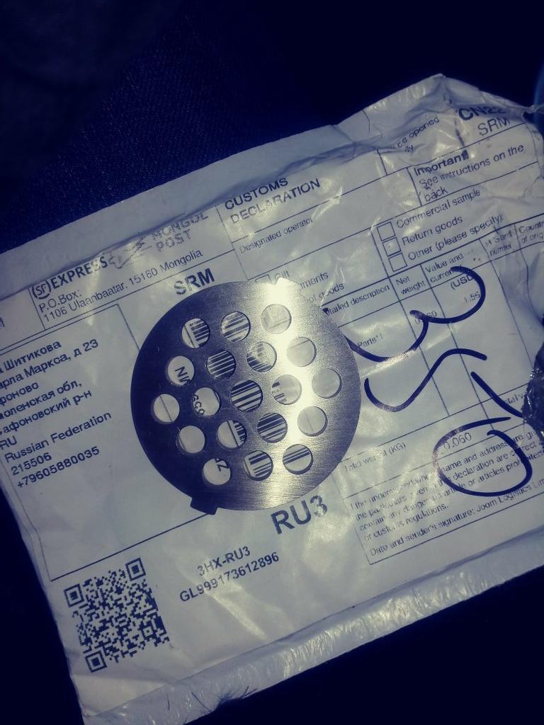 Le produit a été expédié pendant environ un mois, est arrivé en bon état. L'assiette convenait parfaitement à mon hachoir à viande.