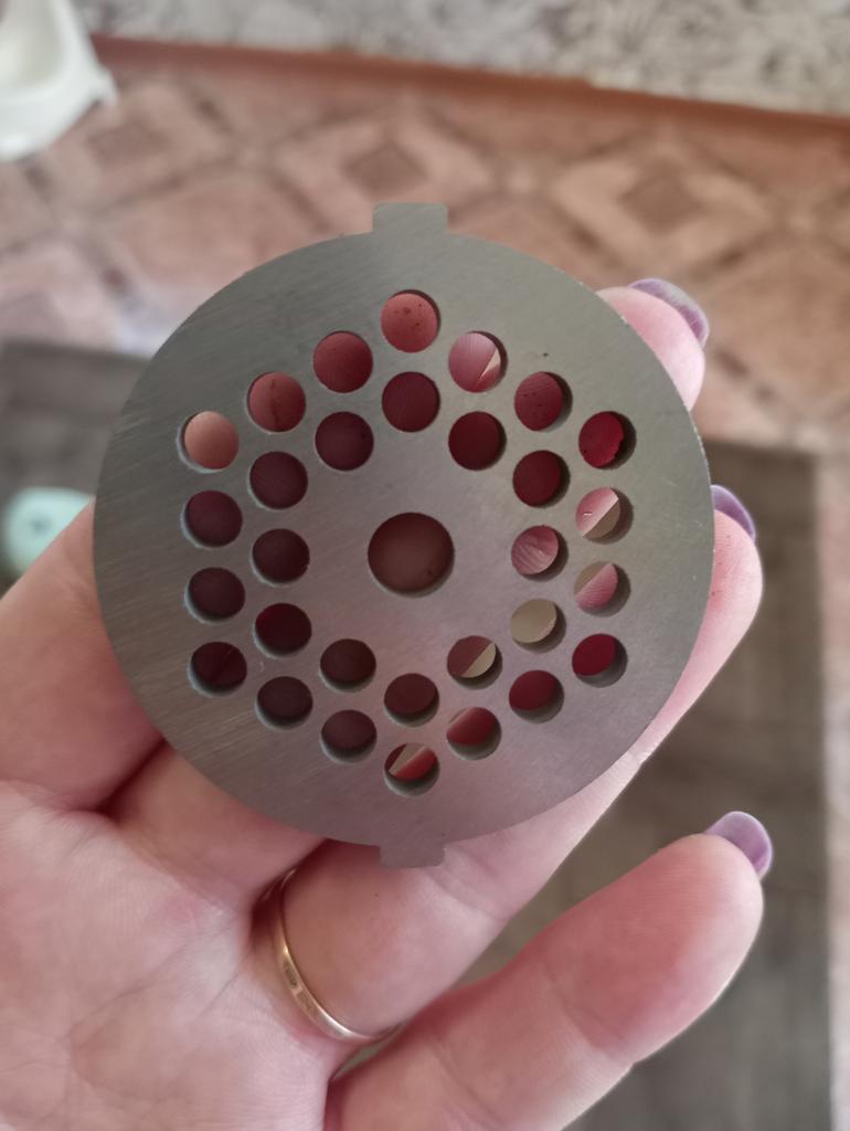 Excellente grille en acier, s'intègre parfaitement dans le hachoir à viande.