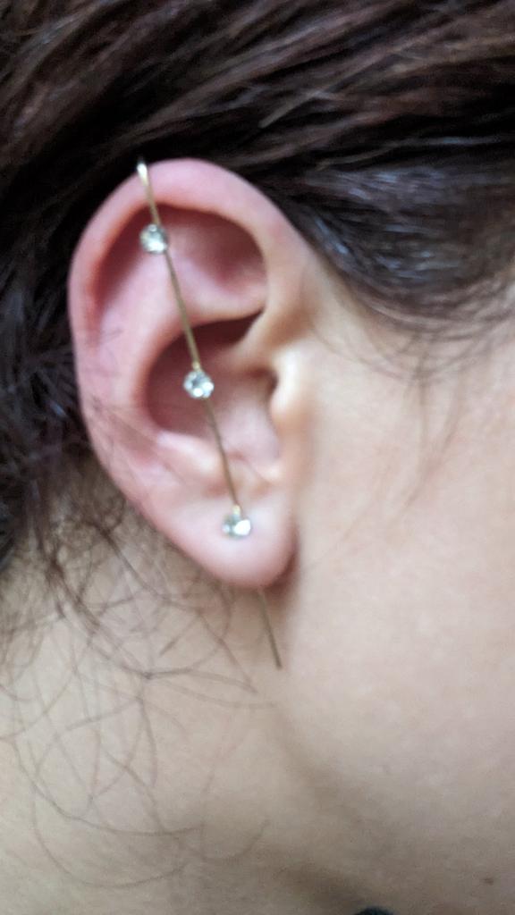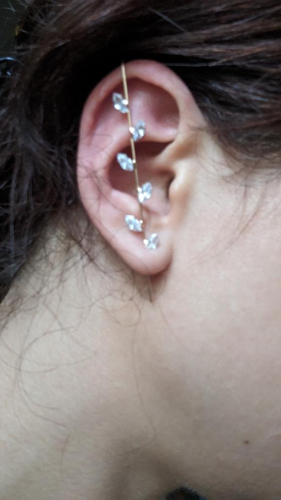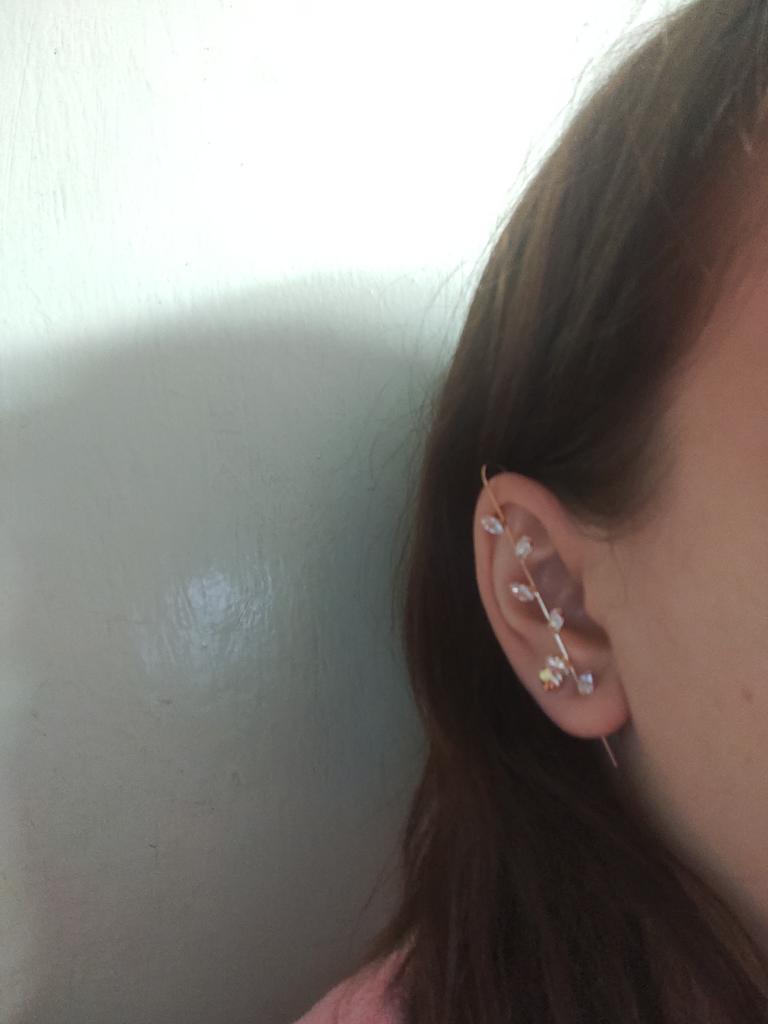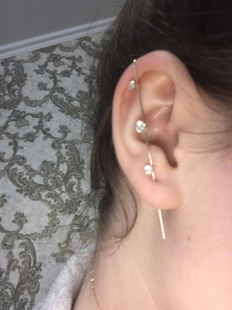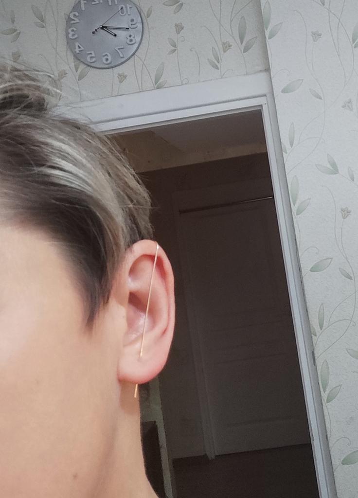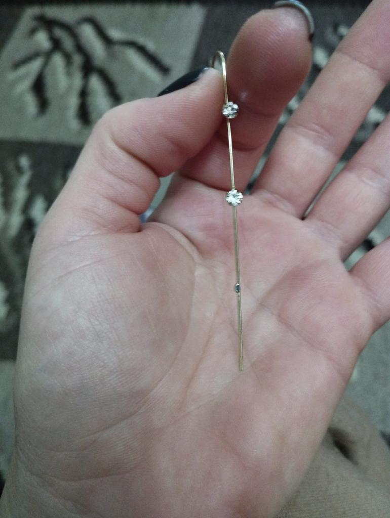 C'est très beau, mais la jambe est très longue, j'ai une oreille assez grande, mais il s'avère que les premières pierres sont juste à côté les unes des autres, si vous avez de petites oreilles, vous risquez de ne pas les porter)