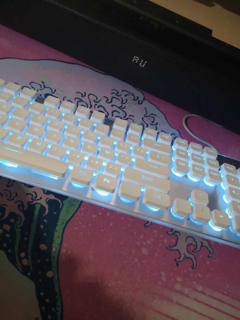 Une seule couleur brûle. Il est magnifique en noir et or. Il est confortable d'appuyer, le son lorsqu'il est appuyé est un peu plus faible que d'habitude. Normale.