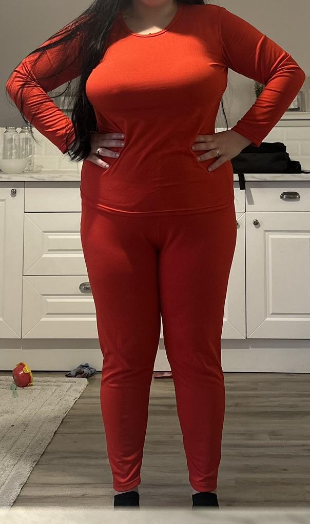 Gros coup de cœur pour moi j’adore cet ensemble j’ai d’ailleurs recommandé en rouge ! Il tien chaud et peu de porter dehors sans problème ! Le prix est tout doux on a une tenu pour moin de 20€ merci merci par contre prendre 3 tailles au dessus sa taille très petit .. je fait un 44 et j’ai pris 5xl