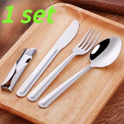 Set de couverts pliable portable vert armée en acier inoxydable avec pochette pour sets de couverts d'extérieur