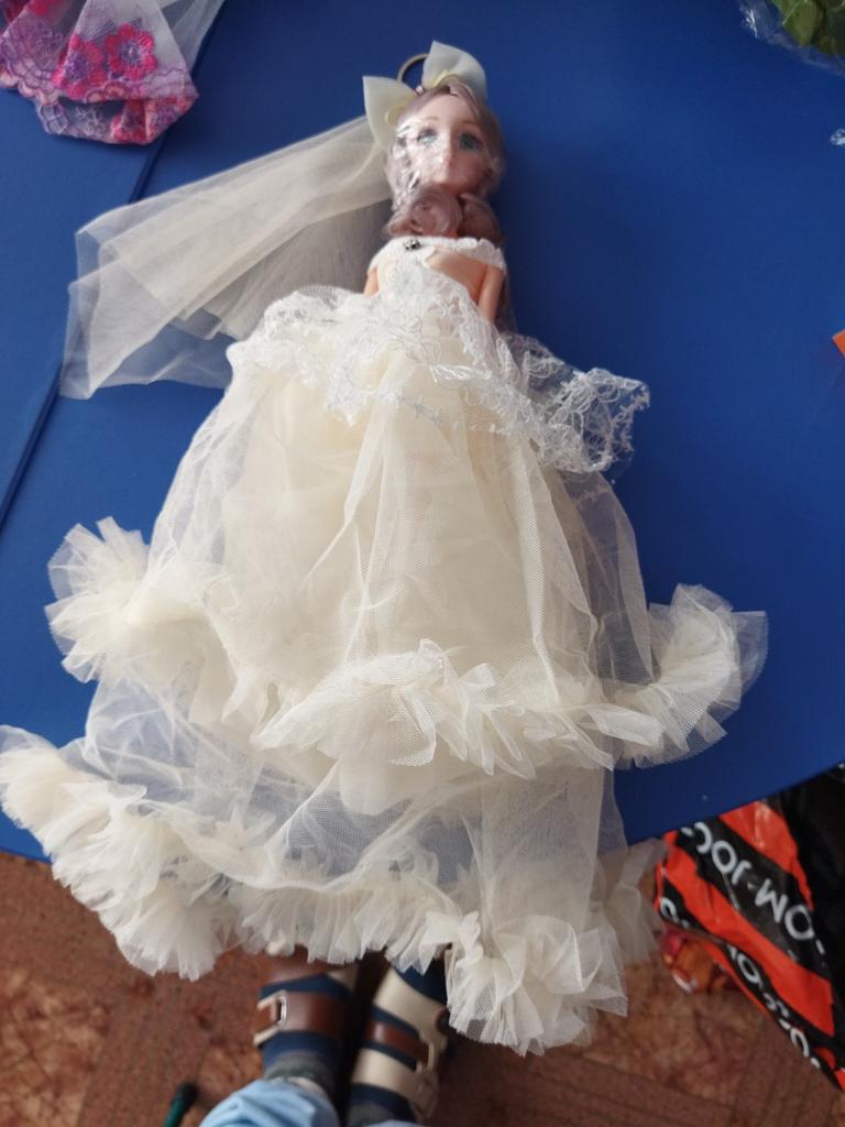 La robe est collée directement sur la poupée, elle n'est pas cousue, mais juste des couches de tissu collées sur la poupée, comme une robe🙈terrible